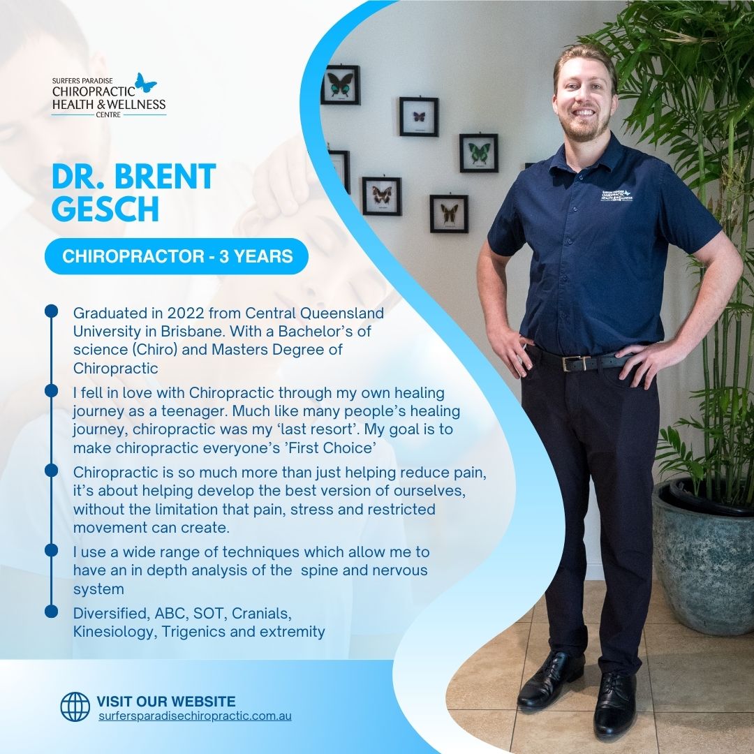 Dr Brent Gesch earned his Bachelor of Science (Chiropractic) and a Master of Clinical Chiropractic after an intensive five-year program at Central Queensland University in Brisbane, solidifying his expertise as a Chiropractor.